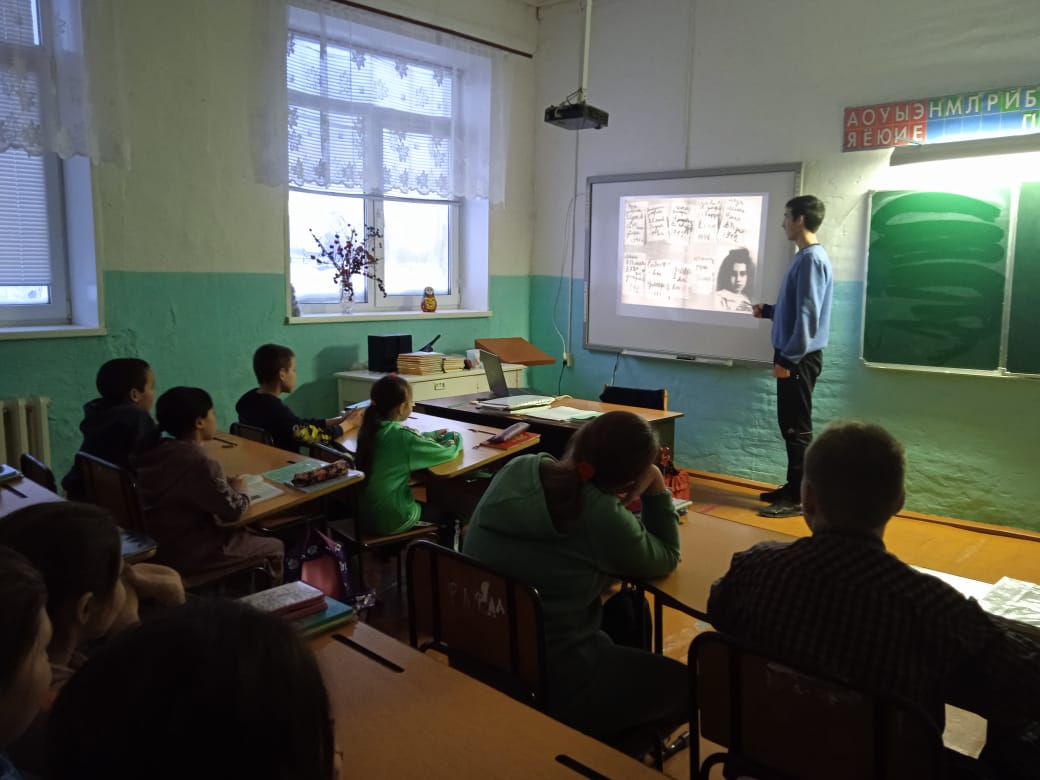 17 января в начальных классах прошел классный час " Дневник Тани Савичевой". Во время мероприятия учитель начальных классов рассказала о непростой судьбе ленинградской школьницы Тани Савичевой. Дети, затаив дыхание, слушали рассказ о девочке, в жизнь которой ворвалась война. Ребята вглядывались в портрет красивой черноглазой девочки, похоронившей всю семью и умершей от дистрофии. Девять листочков дневника со скорбными записями, начертанными карандашом нетвёрдой детской рукой. Таня Савичева стала символом тех страданий, которые перенесли все жители блокадного Ленинграда.