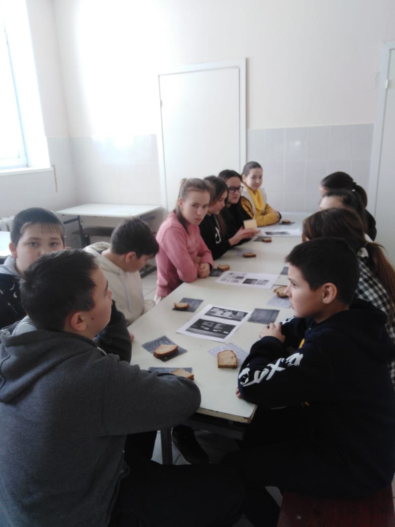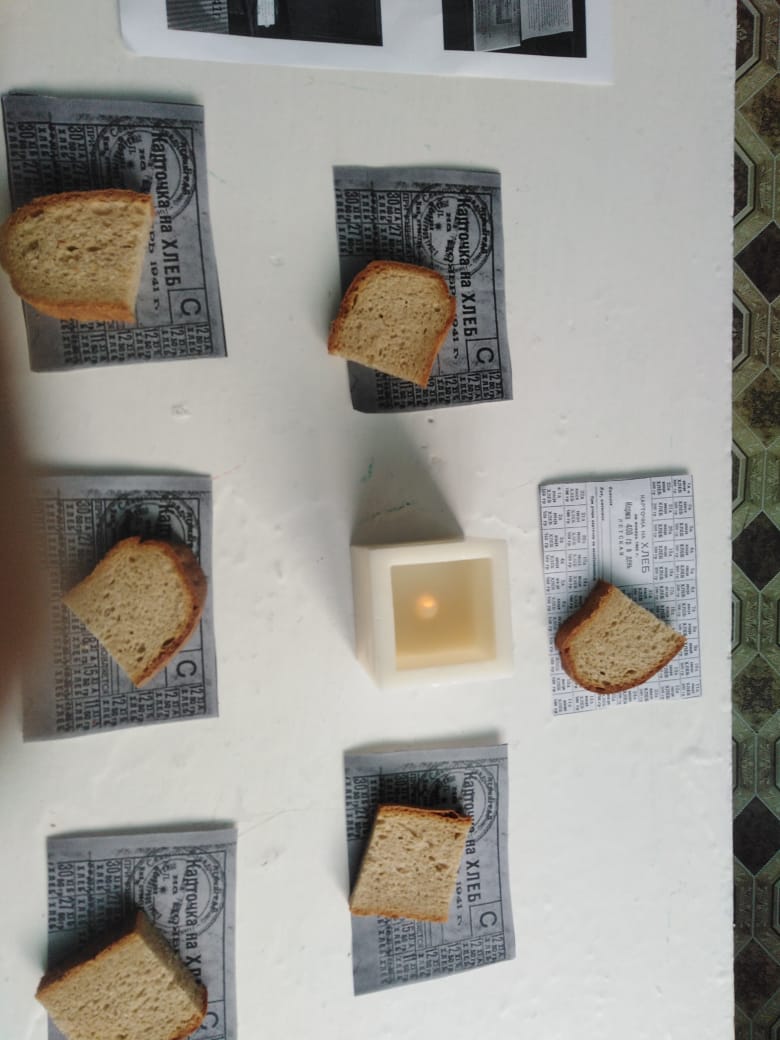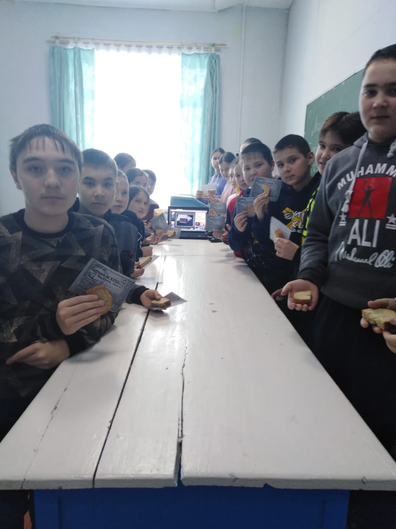 Заключительным мероприятием стала Акция «Блокадный хлеб», которая прошла 27 января в школьной столовой. Весь день на обеденных столах стояли информационные таблички, тарелка с кусочком чёрного хлеба и хлебная карточка, утеря которой была равносильно смерти. В лаконичных, но очень важных табличках ребята смогли в полной мере увидеть весь масштаб и ужас 872 дней блокады Ленинграда.